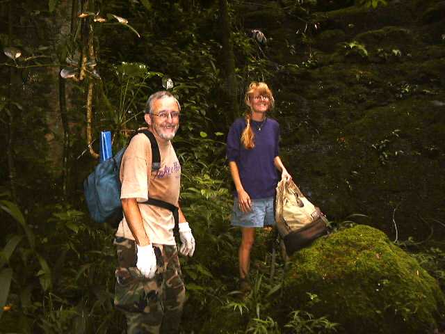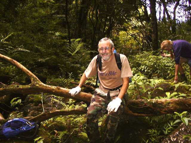 Bob, Arlene, and I scout out a seldom-used trail in Manoa Valley