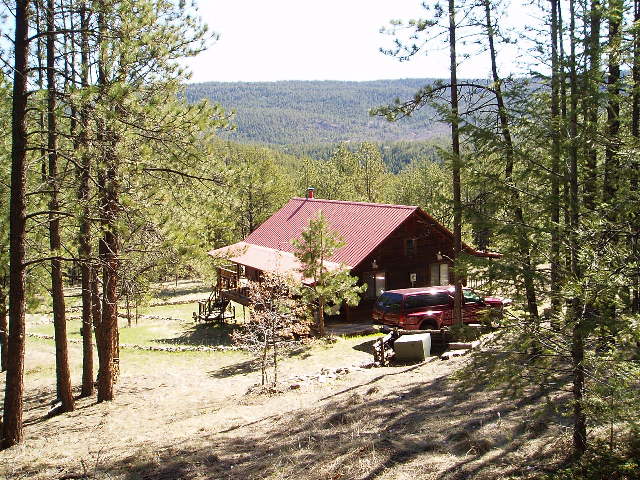 been very clear and dry and this morning (5/8) it is beautiful. 5/8 (evening). We drove through the day and never have I seen so much of nothing! Miles and miles of open, empty desert! It was very attractive, in its own way, but very unlike anything we have lived around. We went west on I-40 to Albuquerque, then turned north on I-25 until reaching Las Vegas (NM). There we went north on a rural road for about 45 minutes until we reached Teddie's parents' cabin in the woods. The weather today was perfect, and the miles peeled off quickly in the big pickup, so it was a good trip. I'm getting 17-19 mpg on the highway, and that is about what I expected. Diesel fuel has been anywhere from $2.30/gallon to $2.89/gallon, so this trip is not going to be cheap. I must have $500 worth of fuel receipts in the glove box now and the trip is slightly less than half over. But we're having fun (except when the dogs are fighting) and seeing lots of countryside. 5/10 Today we drove into Taos to look around, and I was not impressed. It was like the Lahaina of New Mexico - lots and lots of craft, jewelry, and art shops. But it was nice to see some of the countryside north of here and the one hour drive (each way) was pleasant. Tomorrow Teddie's folks arrive at the cabin and we will all be here for a few days before heading on to Borger, TX. We still feel like we are on vacation, and the retirement will probably not fully sink in until we are eventually settled in our Sequim house and no longer have to report for work on Monday. So far, retirement is great! 5/17/05 After a few very relaxing days in the NM