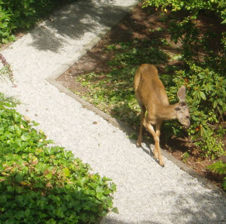 When we got home and parked the bike, there were three deer (a doe and two large fawns) resting on the front yard. They paid little attention to us and hung around for about 40 minutes before moving on. One day we may see them as pests but for now they are fun to have around. Tomorrow the glass people come and do their thing. We will be glad to be rid of the foggy panes that we have here and there.