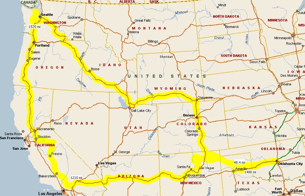 north we passed through Pueblo, Colorado Springs, Denver, and Ft. Collins before