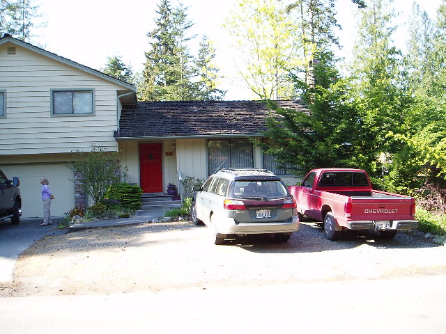 for the next April 16: Ed and I catch the ferry back to Edmonds and then drive to Kenmore where we meet the owner of the travel trailer. It's raining, so we don't take too much time to learn all the ins and outs of the system but, rather, hook the trailer up and prepare to haul it to Poulsbo. I check the lights and brakes to make sure they are OK, and then it's back to Edmonds to catch the ferry once again. Eventually we reach Poulsbo and check the trailer into Eagle RV where it will stay for three nights while we check out the systems and prepare to move it to Sequim. We find a problem with the toilet valve, but that is quickly fixed, and a few other minor items are corrected. Overall, the trailer seems to be in pretty good shape and we're quite happy with it. April 19: After days of pampering by Ed and Chrys (including Chrys' breakfasts-to-kill-for) it's time to head for Sequim! We pick up the trailer at Eagle RV and turn westward, eventually reaching Sequim and checking into Gilgal Oasis RV Park where we will stay for the next two weeks. April 25: We decide to drive around SunLand to see what's for sale, and find a home on Taylor Blvd for sale by owner. He shows us through and we find that we both like the place. We need to look around further, though, to see what else is available and to get a better feel for the prices in the area. April 26: We look at a half dozen places in SunLand with a Realtor and find that I like some that Teddie doesn't care for, and she likes some that I don't. There were one or two "possibles" but nothing really grabbed us like the FSBO from the day before. April 27: We make another appointment to look at the FSBO and agree that we both like it. The owner and I do a little dickering in the living room and we quickly come to an agreement on the place. He (Ken) is pretty easy to work with and we feel there will be no problems in closing the deal. A home inspection is arranged and the wheels are set in motion. We still plan to move into the Horizon View house, so this one will be strictly an investment rental. It's a nice place, though, and I wouldn't hesitate to live there myself if the situation dictated.